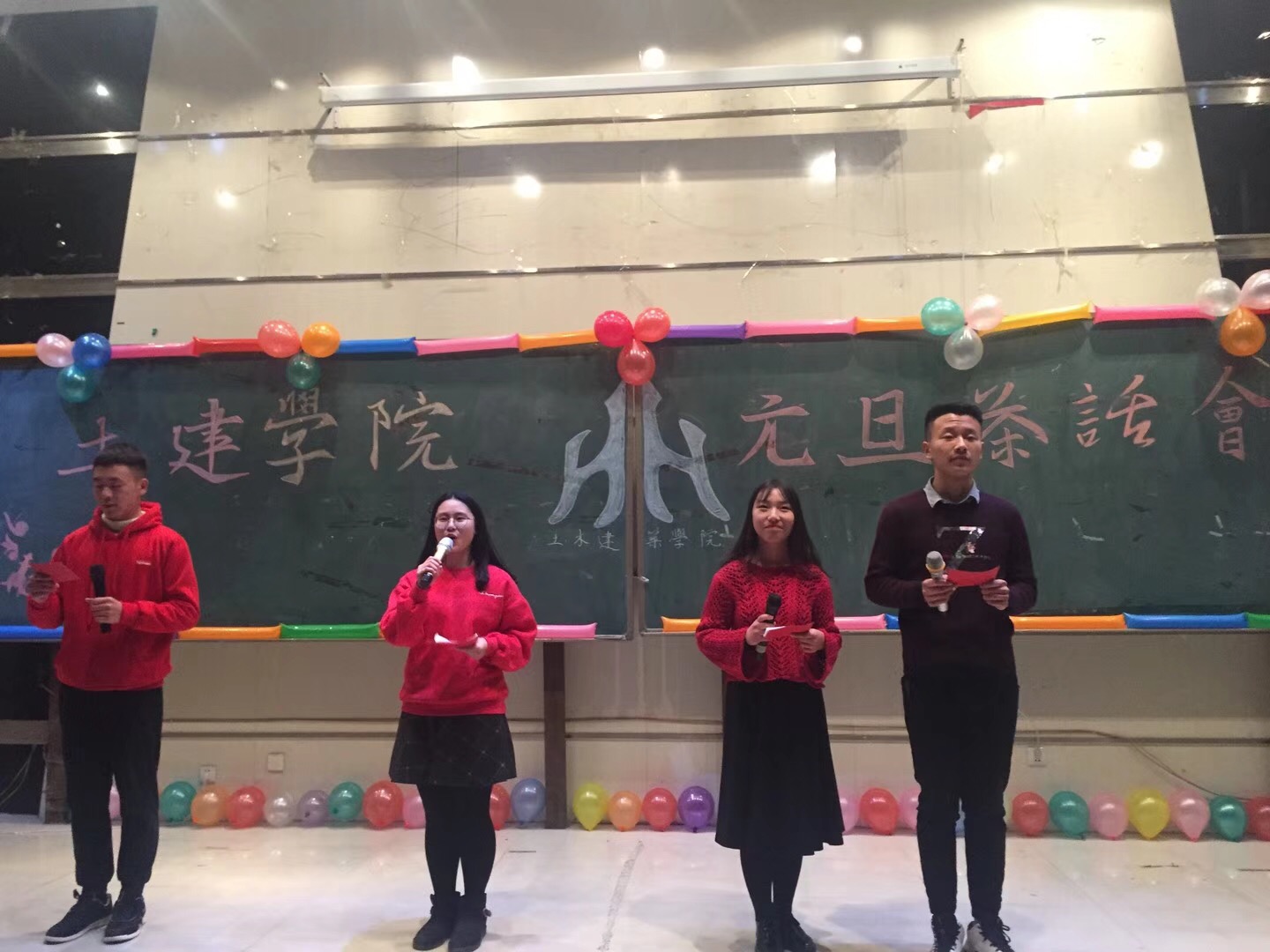 年终述职大会结束后,我院学生会全体学生干部在32号楼201教室举办了元旦茶话会,各部门表演的节目及现场互动游戏将茶话会推向高潮,欢乐喜庆的气氛充满整个教室。