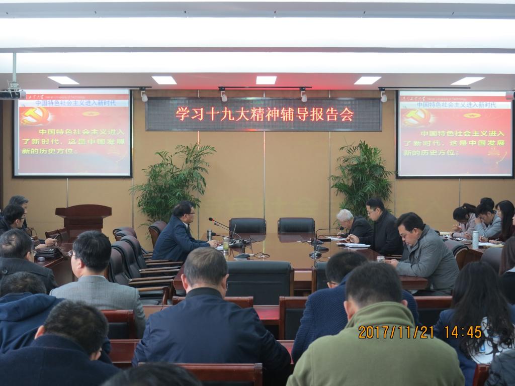 11月21日下午,我院邀请校十九大精神宣讲团成员、马克思主义学院杨卫军教授在32号楼208会议室为我院全体教工作了题为“习近平论美丽中国建设”的十九大精神辅导报告会。报告会由院党委书记谭长福主持。